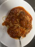 Sauteed bell peppers, sauteed mushrooms and pepperoni over spaghetti, covered with homemade meat sauce, topped with melted cheese, baked to perfection